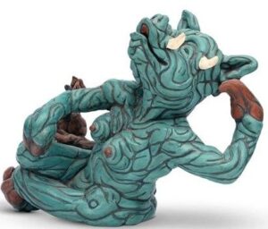 This dynamic clay sculpture by Trisha Kyner presents an arresting figure, poised between the human and the mythical. This piece stands as a compelling example of Kyner’s contemporary sculptural language, where material, texture, and expressive form converge to create a work that is both visceral and imaginative.