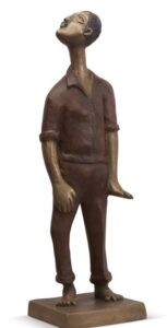 This powerful sculpture revisits the enduring theme of the Pietà, a subject the artist began exploring in the 1960s. In this interpretation, the Pietà is no longer solely a sacred image but a timeless reflection on the human condition—on mourning, love, and the enduring need for solace.