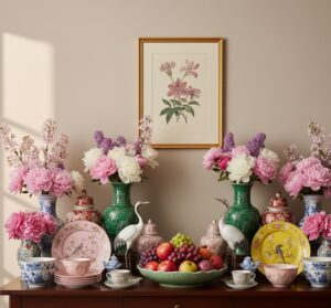 - Vintage porcelain vases used as statement décor pieces