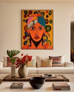 Moreover, art helps in setting the mood. Soft abstracts can create calm. Bold colours of modern art can energize the space. Traditional Indian pieces can bring warmth and nostalgia.
