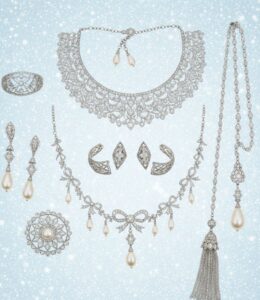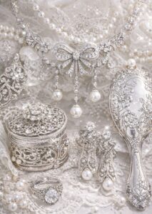 - Filigree and Garland Designs: Lace-like patterns featuring pearls and diamonds.