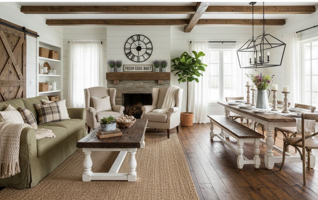 Farmhouse style isn’t a fad — it’s a feeling. It’s the creak of wooden floors, the softness of a linen pillow, the worn beauty of a table that’s seen a hundred family dinners.