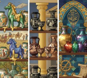 - Ancient Greek pottery: Famous for red-figure and black-figure work, often inspired by the look of precious metals.