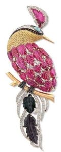 Animal-inspired jewels have consistently performed well at auction. They appeal to collectors who value narrative design and artistic individuality. A peacock brooch in particular stands out, as it combines colour, symbolism, and sculptural form.