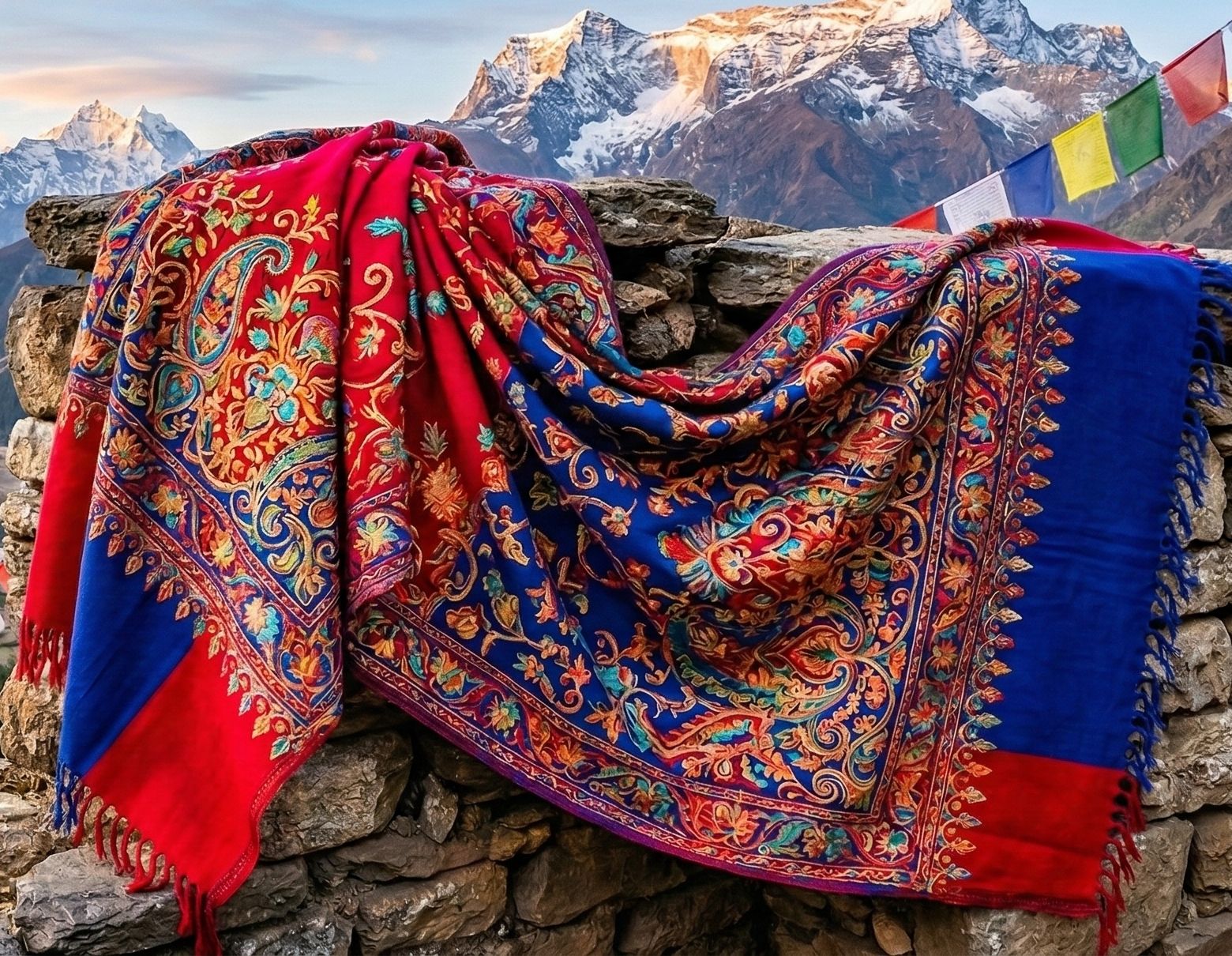 A Pashmina shawl is a luxurious wool shawl made from the soft undercoat of the Changthangi goat found in the Himalayan region.