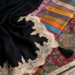 A Lace Pashmina is a luxurious, handcrafted accessory that combines the supreme warmth and softness of authentic Kashmiri Pashmina (cashmere) with the delicate, intricate beauty of hand-applied lace, typically French Chantilly lace.