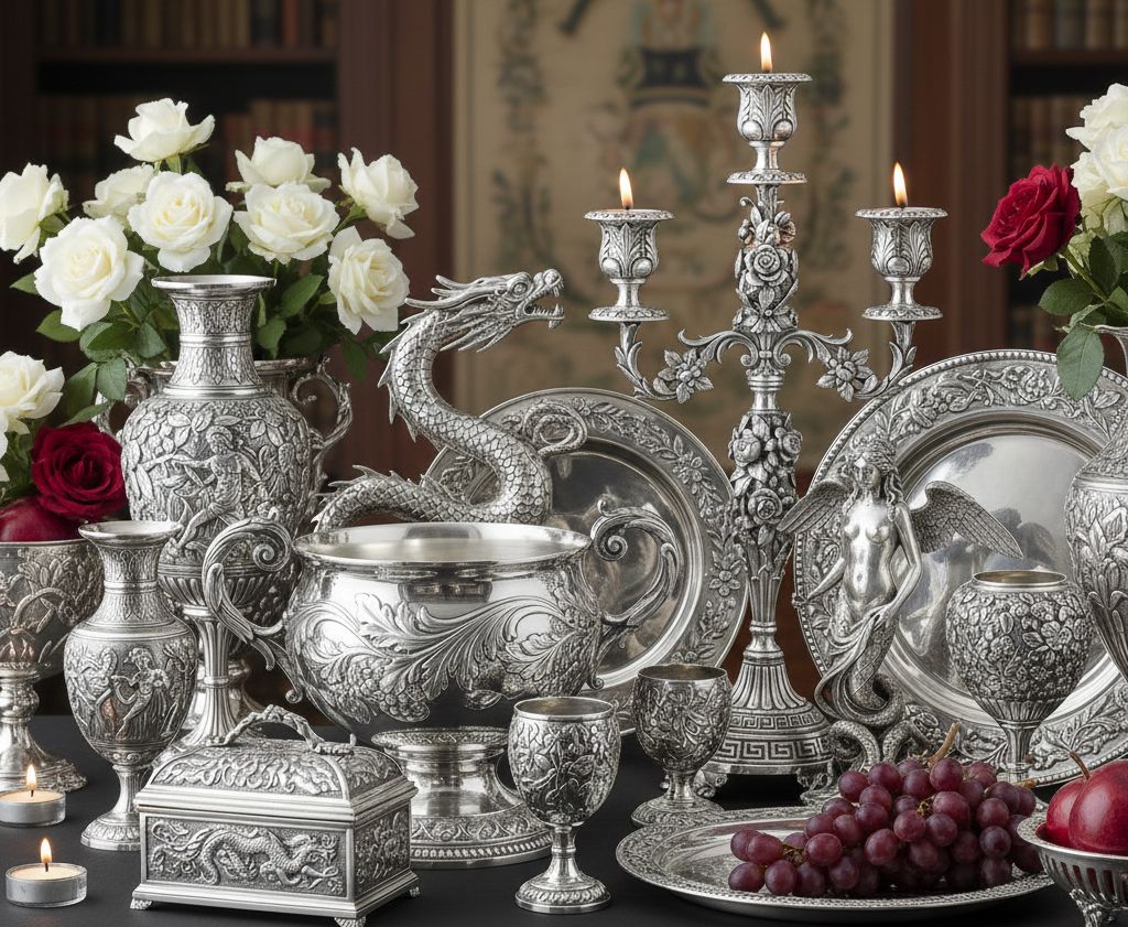 There’s something quietly powerful about antique silver. Pick up an antique teapot or a vintage silver serving tray, and you’ll notice it isn’t just shaped metal. It tells a story. Tiny engraved flowers, proud lions, curling vines, geometric borders, even mythological creatures — all of them speak of the era, the maker, and the tastes of the time.