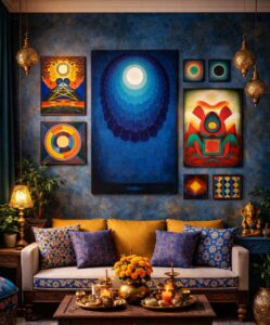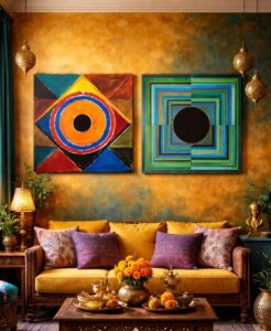 In both traditional and modern contexts, yantras have been used as meditative diagrams. Contemporary artists often reinterpret these forms using bold colours and abstract compositions.