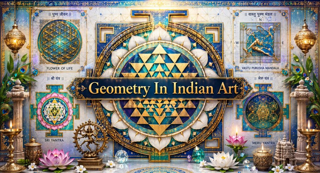 Deep within the heart of Indian spirituality lies an art form that has captivated minds and souls for millennia: symmetry and geometry. In Indian art, geometry was never used by accident. Instead, it was treated as a deliberate system of order, measurement, and belief. Circles, triangles, grids, and lattices were not simply added for decoration. They were used to structure space intellectually as well as spiritually.