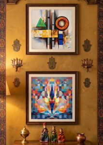 Sacred geometry in modern Indian art has not been replicated in its original form. Instead, it has been reinterpreted through abstraction, symbolism, and contemporary techniques.