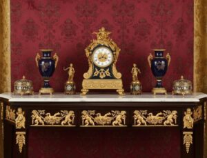 Under Napoleon I in the early 19th century, ormolu took on a more monumental and symbolic role. Empire-style furniture featured strong lines, rich materials, and bold ormolu mounts that reinforced imperial authority. Motifs such as eagles, lions, laurel crowns, and military emblems were common.