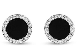 Crafted in 18k white gold, this striking pair features a polished onyx centre framed by a halo of natural diamonds. Each cufflink is fitted with a secure bar toggle closure, offering both comfort and refinement.