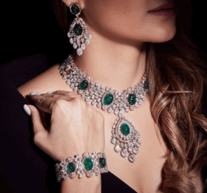 Victorian diamond jewellery became more prevalent in this era. By the 1870s, diamond jewellery became more affordable and fashionable. Popular styles included diamond cluster rings, starburst brooches, and tiaras, often crafted in silver-topped gold settings to enhance the stones’ brilliance.