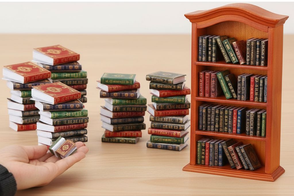 For centuries, books have been the vessels of human knowledge and imagination. But imagine a library where the greatest classics, essential reference guides, and sacred texts could fit comfortably in the palm of your hand, a waistcoat pocket, or a lady’s purse. Welcome to the enchanting world of miniature books or mini books, tiny tomes that defy their size with their profound historical value and exquisite craftsmanship. These aren’t novelty toys—they’re real books, crafted with full text, bindings, printing, sometimes illustrations, but on a very small scale. In particular, antique miniature books—those produced in earlier centuries—represent a fascinating intersection of craftsmanship, portability, devotion, and artistry. Book lovers began collecting miniature books for their artistic appeal, historical significance, and treating them as antique treasures.