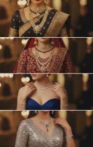 - Lehengas: Bridal parures are ideal. Focus on coordinating with the blouse neckline.