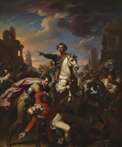 In the Baroque period of the seventeenth century, figurative painting became more theatrical, dynamic, and emotionally charged. Artists moved away from the calm balance of the Renaissance toward dramatic compositions that heightened movement, tension, and light. Baroque figuration sought not just to depict the figure, but to move the viewer emotionally.