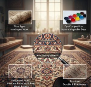 Knot Density: Measured in KPSI; finer weaves often indicate superior craftsmanship.